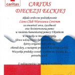 Członkowie LC Warszawa Centrum otrzymali podziękowanie za świąteczne prezenty od podopiecznych Domu Małych Dzieci w Chełmie. Do podziękowań dołączone zostały życzenia „wielu sukcesów i powodzenia w realizacji życiowych zamierzeń”.