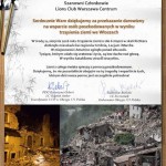 We wrześniu klub wsparł działania Lions Clubs International Fundation na rzecz poszkodowanych w trzęsieniu ziemi w Umbrii, Lacium i Marche. Podziękowanie w imieniu fundacji przekazali na ręce klubu Katarzyna Gebert – koordynator LCIF w Okręgu 121 Polska oraz Radosław Bielicki – gubernator okręgu.