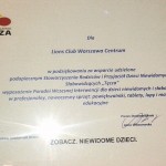 Członkowie LC Warszawa Centrum otrzymali podziękowanie za świąteczne prezenty od podopiecznych Domu Małych Dzieci w Chełmie. Do podziękowań dołączone zostały życzenia „wielu sukcesów i powodzenia w realizacji życiowych zamierzeń”.
