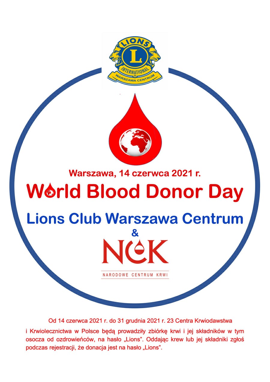 Od 14 czerwca 2021 do końca roku Centra Krwiodawstwa i Kriolecznictwa w Polsce prowadzą zbiórkę krwi i jej składników w tym osocza od ozdrowieńców wspierane przez LC Warszawa Centrum. Oddając krew lub jej składnik zgłoś, że donacja jest na hasło „Lions”. Adresy regionalnych centrów krwiodawstwa i krwiolecznictwa znaleźć można między innymi na stronie Instytutu Hematologii i Transfuzjologii: https://ihit.waw.pl/