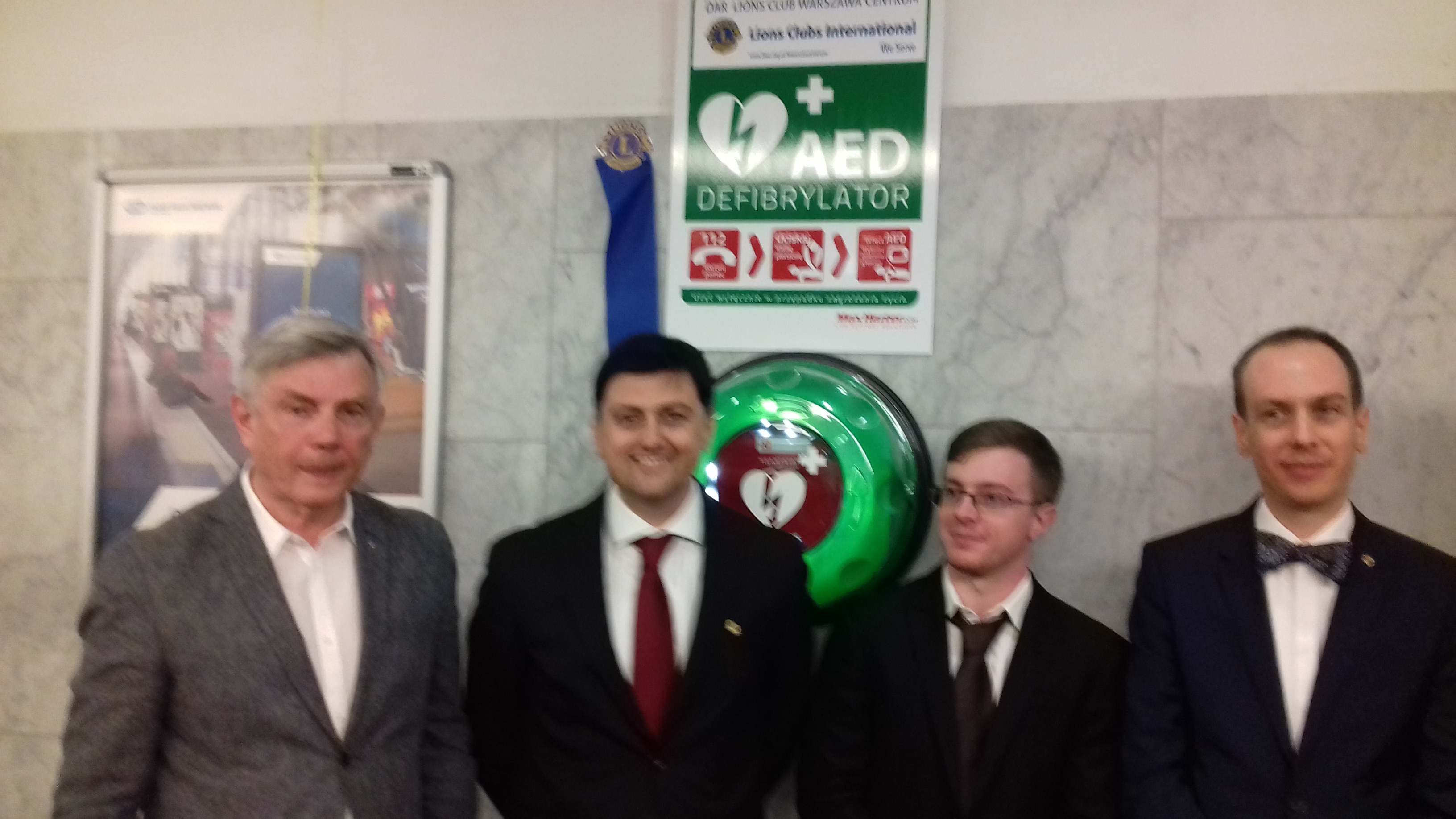 Warszawski Dworzec Centralny otrzymał od warszawskich klubów Lions dwa defibrylatory. Jeden ufundowany przez LC Warszawa Centrum, drugi zakupiony ze składek wszystkich warszawskich klubów – w tym także naszego. Defibrylatory zostały umieszczone na galeriach Środkowej i Wschodniej dworca – tuż przy zejściach na najczęściej użytkowane perony Drugi i Trzeci. Mamy nadzieję, że będą potrzebne pasażerom jak najrzadziej. Od lewej: Mieczysław Szczepanski, Domenico di Bisceglie, Luca Bertolotto, Guido Parodi.