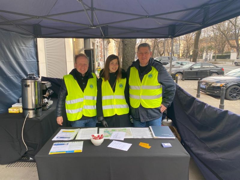 zorganizowanym przez inny warszawski klub,LC Warszawa, przy ambasadzie Ukrainy, w którym udzielamy uchodźcom informacji w podstawowych sprawach związanych z pobytem, pracą i leczeniem w Polsce. Zgłodniali mogą dostać w punkcie informacyjnym kanapkę, kawę, herbatę. Dzieci – słodycze.