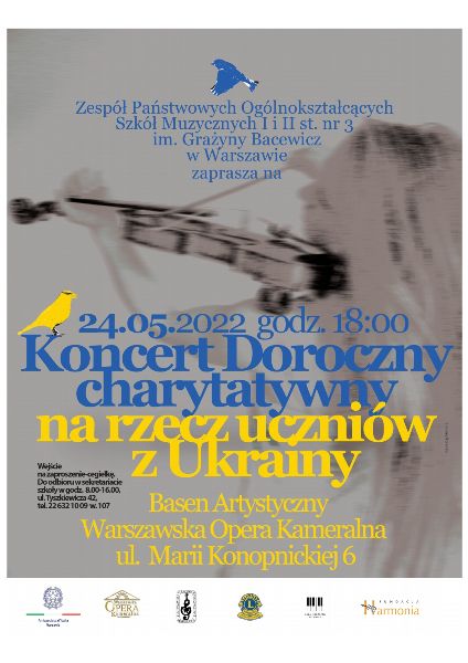 Lions Club Warszawa Centrum kontynuuje więc działania na rzecz jej mieszkańców. Prawie każdego dnia wyjeżdżają z Warszawy transporty z pomocą kierowane na Ukrainę – m.in. do Lwowa, Charkowa, Kijowa, do Zaporoża – bezpośrednio lub za pośrednictwem naszych partnerów. W maju klub był też współorganizatorem koncertu w Basenie Artystycznym Warszawskiej Opery Kameralnej na rzecz uczniów i studentów szkół muzycznych z Ukrainy. Wystąpili słuchacze zespołu szkół muzycznych im. Krystyny Bacewicz w Warszawie.