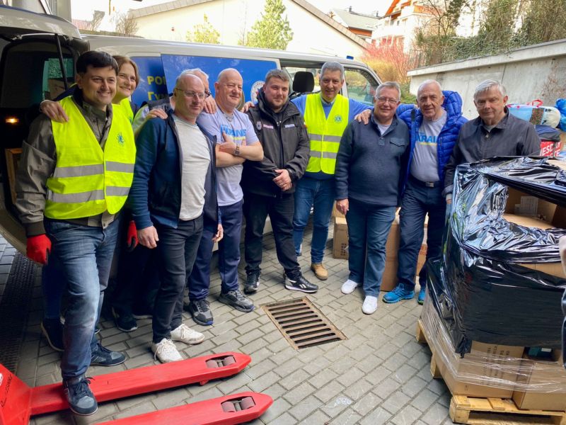W końcu marca z darami dla ofiar wojny w Ukrainie zawitali ponownie do Warszawy nasi przyjaciele Lwy z Anglii . Część z tych darów została przekierowania przez nasz klub do hotelu w Łomży, gdzie mieszkają ukraińskie dzieci i matki, które po wybuchu wojny dołączyły do pracujących w Polsce mężów. Część pojechała do hotelu OSSA w Rawie Mazowieckiej, gdzie mieszkają sieroty z Ukrainy. Środki medyczne z pomocą fundacji Humanosh przekierowane zostały do szpitala we Lwowie. Żywność i ubrania pojechały do Domu Rekolekcyjnego Nadliwie, który udziela schronienia potrzebujący Ukraińcom.