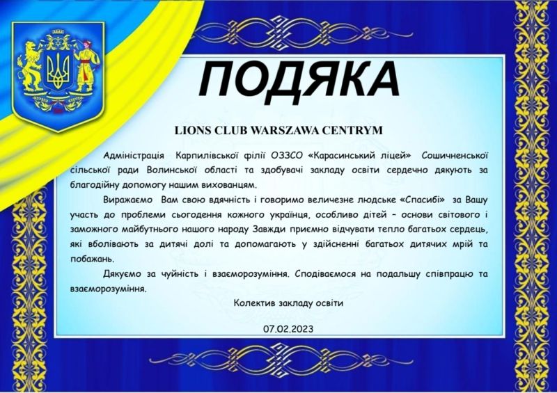 Informacje o kolejnych działaniach klubu na rzecz Ukrainy znaleźć można na stronie: Lions Club Warszawa Centrum | Warsaw | Facebook