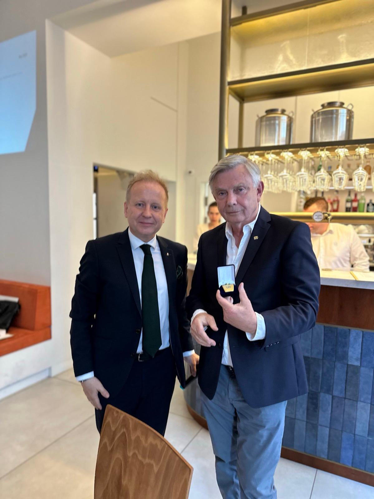 Drugi list oraz order gubernatora otrzymał pastprezydent klubu Francesco Montefusco – leader klubowej akcji pomocy Ukrainie. Na zdjęciu w towarzystwie gubernatora Jacka Ciesiula.